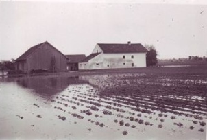 Die Isar führte Hochwasser. Der alte Damm hielt den Wassermassen nicht standen und brach. Weit über 100ha Land, Wohngebäude und Stallungen standen unter Wasser. Menschen und Tiere mussten vorübergehend evakuiert werden. |