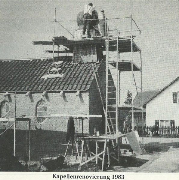 Renovierung der Kriegergedächtniskapelle durch die Dorfgemeinschaft. Material wurde von der Gemeinde Aholming gestellt, die auch Eigentümer der Kapelle ist. |