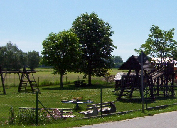 Anlegung eines Kinderspielplatzes neben der Kapelle. Sämtliche Geräte aus Holz wurden in Eigenleistung angefertigt. Das notwenige Material zur Pflege und für den Unterhalt wird von der Gemeinde Aholming gestellt. |